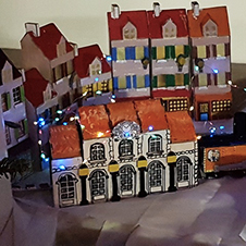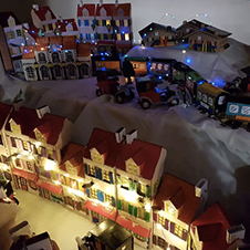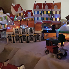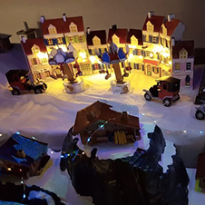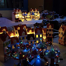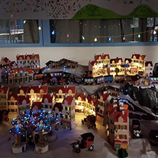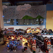 Une fois tous les éléments mis en scène, la magie de ces maquettes s'est révélée ! Il a suffit de quelques lumières et d'un fond musical pour que l'ambiance du couloir de l'école se transforme en un passage féérique ! Durant 1 semaine avant les vacances de Noël les élèves ont pu admirer ce beau village.