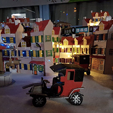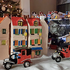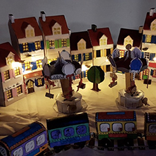 Chaque niveau a réalisé un élément du village : les maisons ont été fabriquées par les classes de CP/CE1, les chalets par les CE2, les manèges par les CM1 et les voitures par la classe des CM2. Le train et la gare ont été confectionnés par les 2 classes de cycle 3.