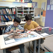Ça a été une véritable occasion de faire travailler les élèves en binôme : ils se sont entraidés, ont partagé leur point fort (lecture et compréhension des instructions ou habilité au montage…), ils se sont vite rendus compte qu’on n’était pas de trop à être deux. Ainsi, ils ont construit un taxi et un biplan, et ont ensuite choisi avec quelle maquette ils souhaitaient partir. Ils ont pris confiance en eux et ont de moins en moins sollicité l’aide des enseignantes !